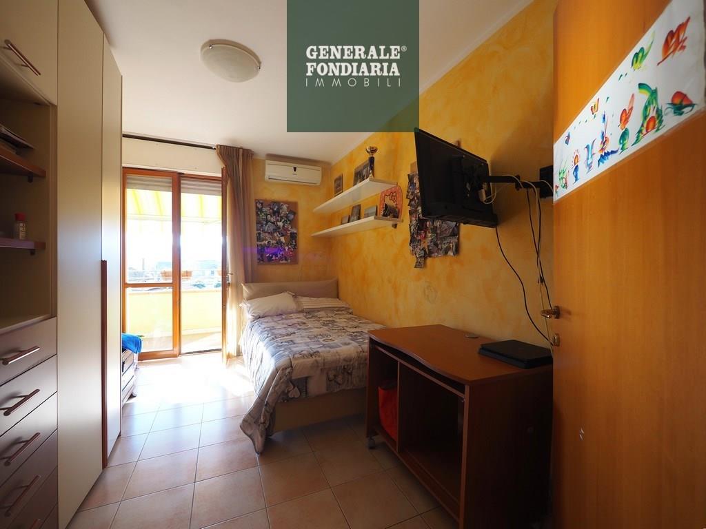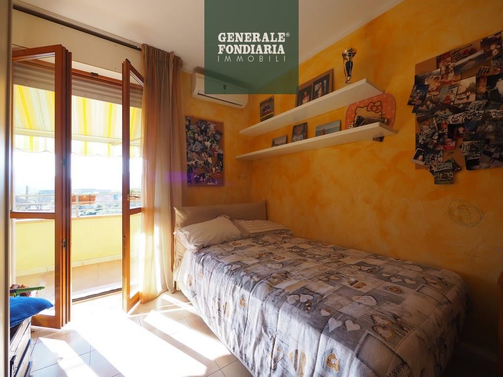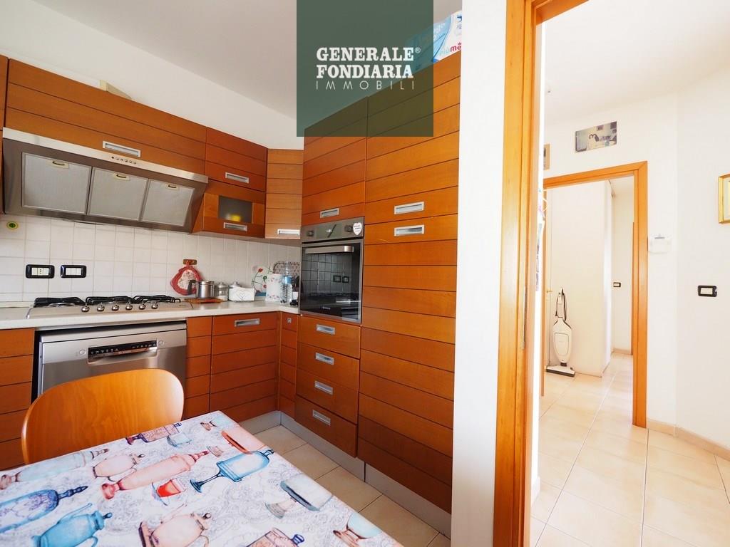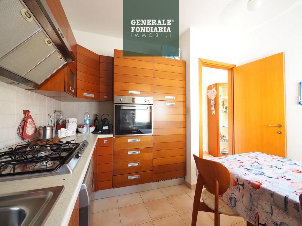 L’ingresso si apre su un ampio disimpegno che conduce alla cucina e al soggiorno abitabile, entrambi molto luminosi e con accesso alla lunga balconata dotata di tenda da sole. Un secondo disimpegno accompagna alla zona notte, dove troviamo due camere da letto, anch’esse con uscita sulla balconata, e un bagno finestrato.