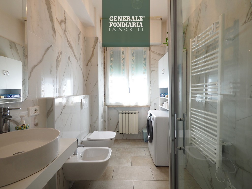 Il bagno è stato recentemente ristrutturato ed è dotato di box doccia e attacco per la lavatrice.